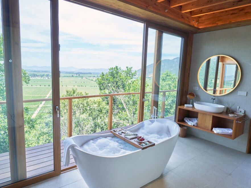 Clos Apalta Residences offers stunning views of the lush vineyards and the majestic Andes, offering a serene escape into nature’s beauty. Coupled with access to award-winning wines crafted on-site, every moment here is a celebration of luxury and Chilean winemaking excellence.