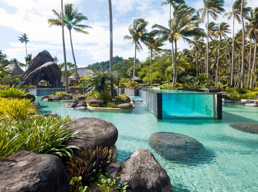 COMO Laucala Island is accessible via private jet or a 55-minute resort-operated flight from Nadi International Airport, landing directly on the island’s private airstrip.