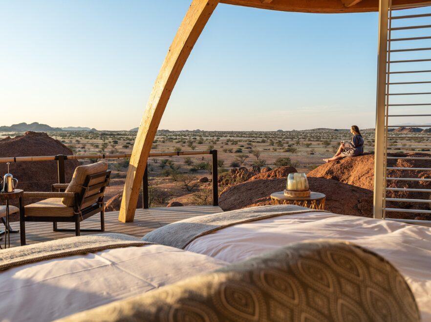 Extraordinary setting – set in the heart of Damaraland among vast granite outcrops and open desert plains, an area known for ancient geology, rock art and big-sky silence.
